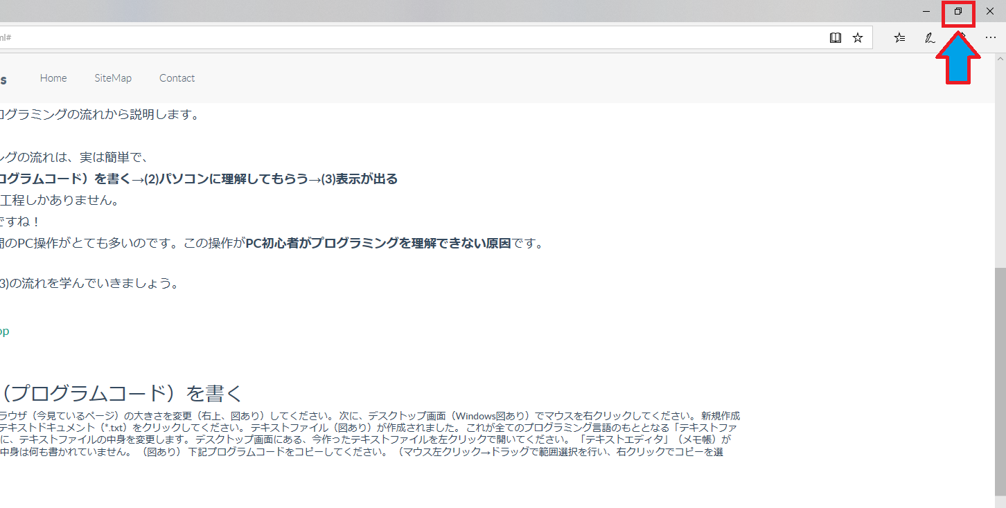 まず、ウェブブラウザ(今見ている枠)の大きさを変更してください。