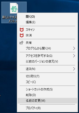 デスクトップ画面のテキストファイルを右クリックしてください。