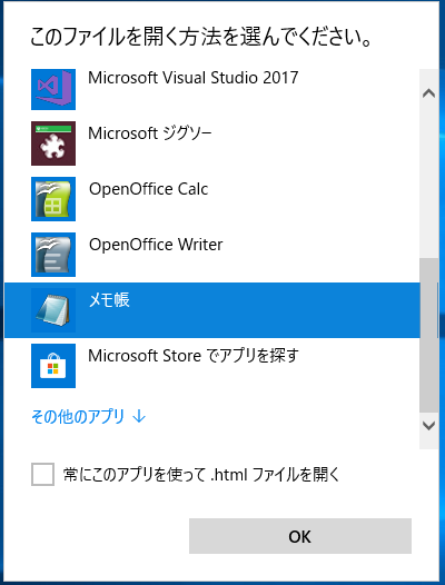 メモ帳がプログラムの表に出てこない場合は、別のプログラムをクリックして探してみてください。