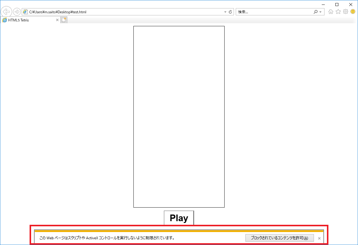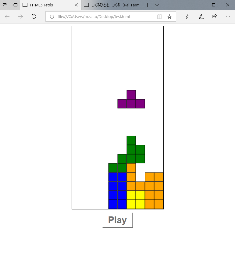 Playをクリックするとテトリスが動きます。