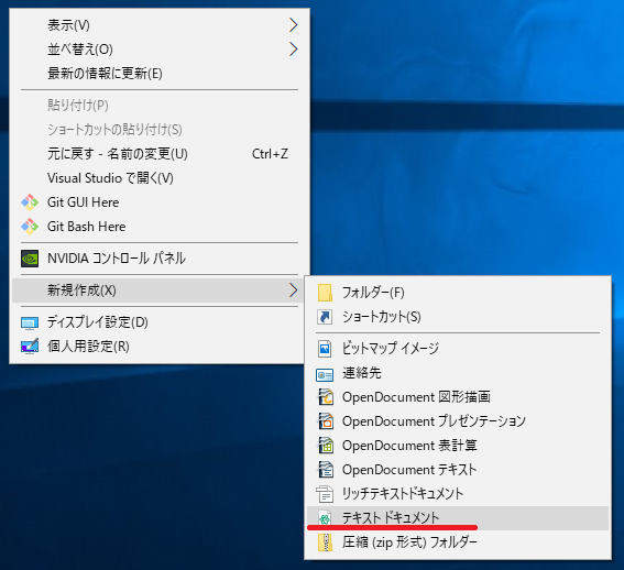 新規作成をクリックし、テキストドキュメントをクリックしてください。