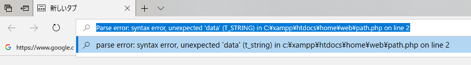 Parse error: syntax error, unexpected 'data' (T_STRING) in C:\xampp\htdocs\home\web\path.php on line 2